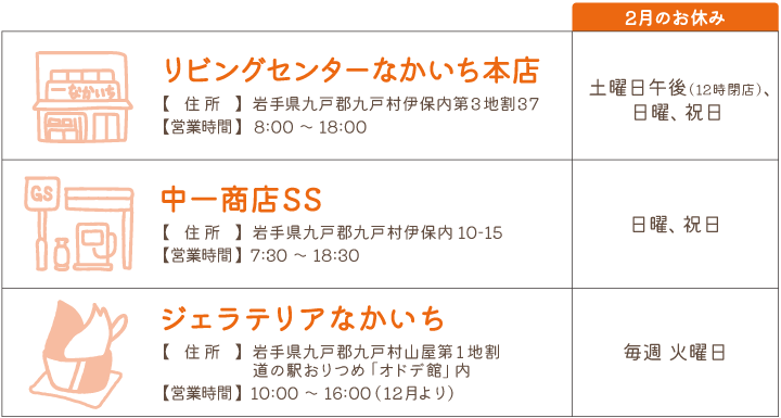 (有)中村一郎商店が運営する各店舗の休業日についておしらせします。