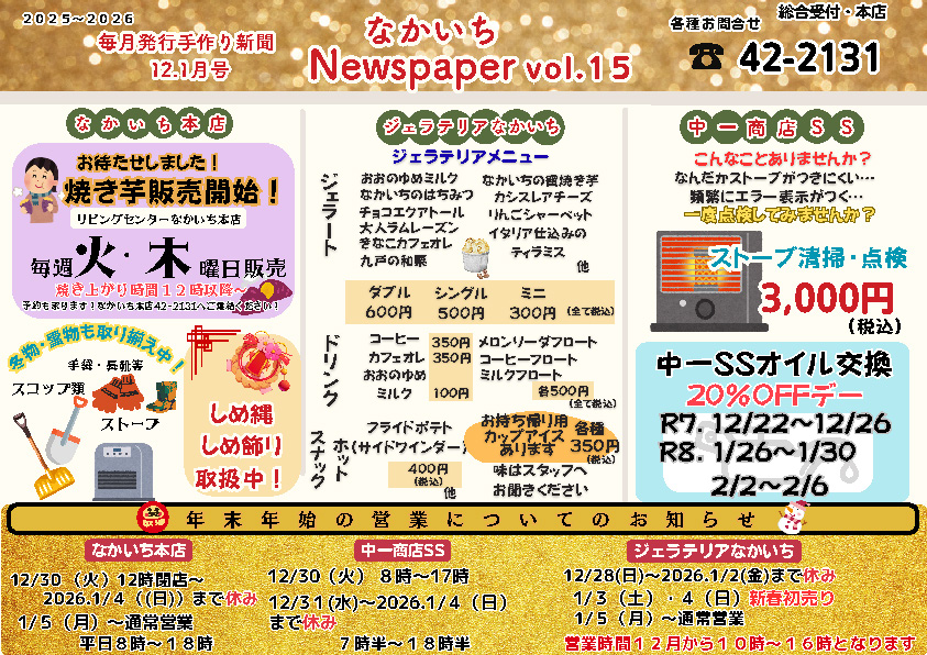 本年中は大変お世話になりました。来年もなかいちをよろしくお願いいたします。