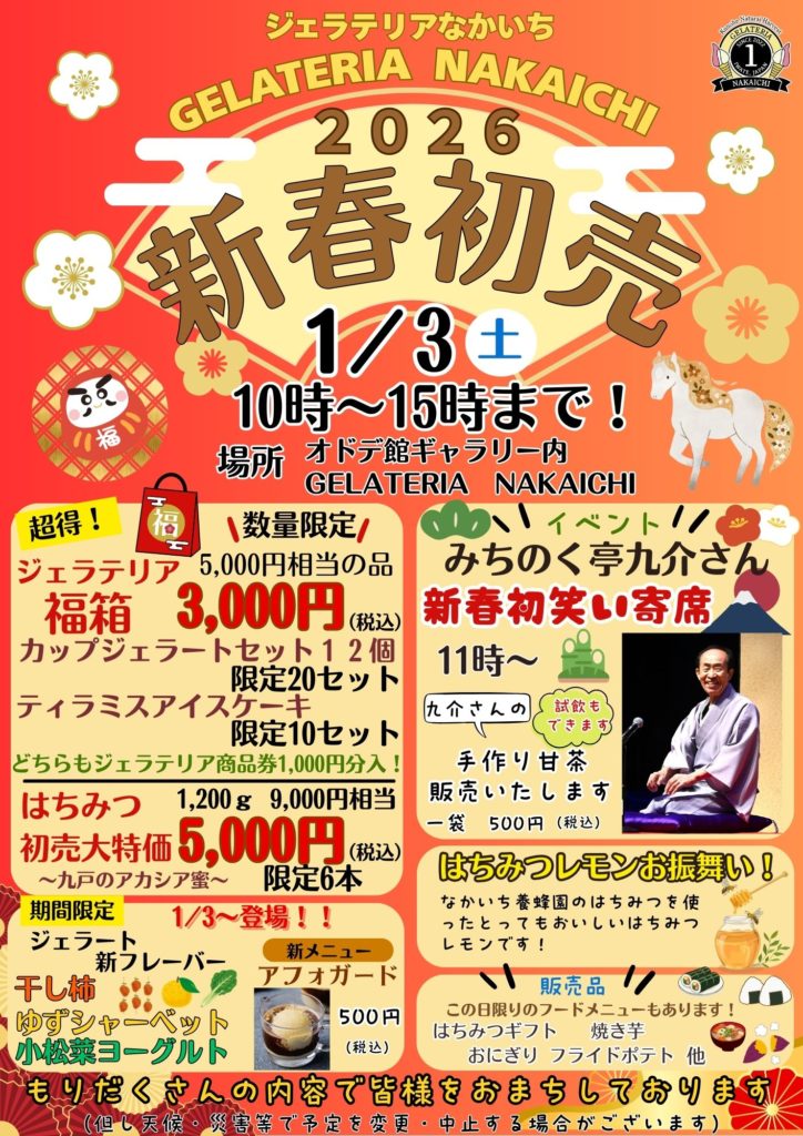 ジェラテリアなかいち「2026新春初売り」を開催いたします!