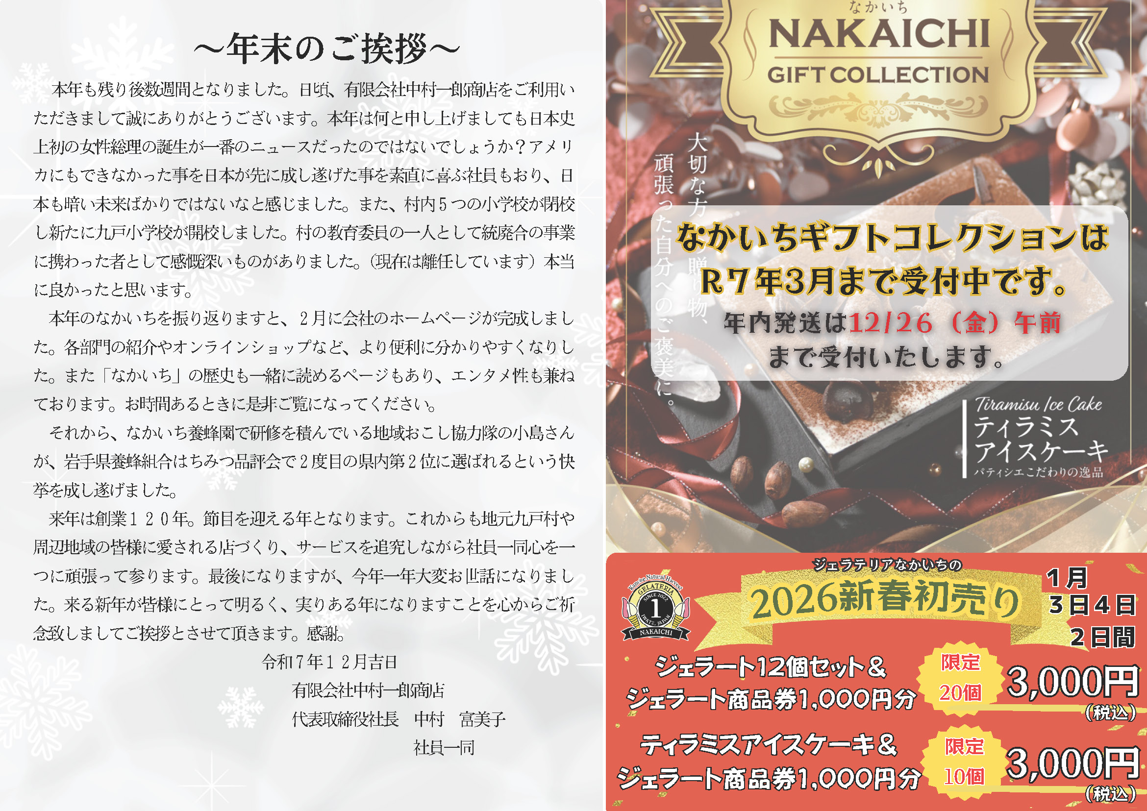 ジェラテリアなかいちでは商品券付きで大変オトクな初売りも♪
